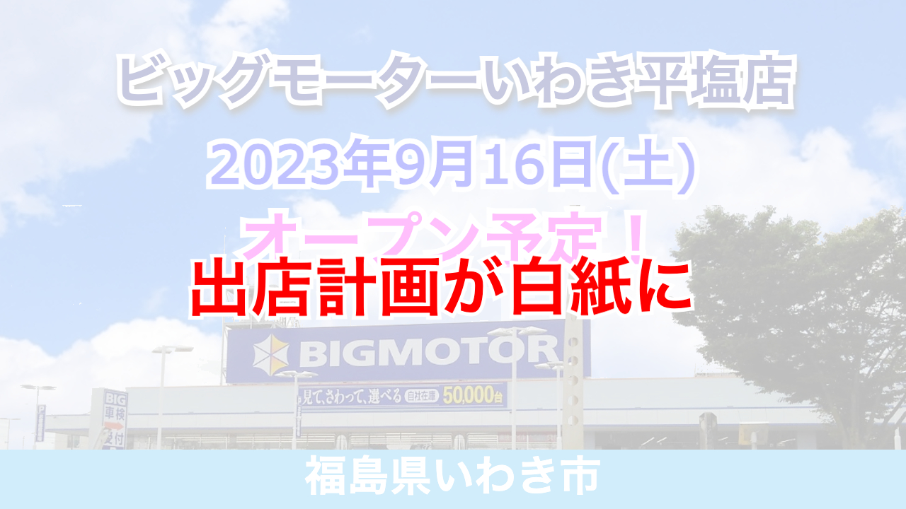 全国的に注目が集まる中古車販売大手「ビッグモーター」の新規出店計画が白紙になったことが新聞各社のネットニュースで明らかになりました。当初の計画では2023年9月16日、福島県いわき市の「いわき平塩店」と、2023年11月、岐阜県大垣市の「大...